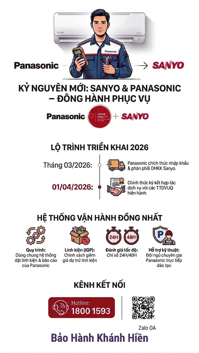Sanyo chính thức quay trở lại thị trường Việt Nam dưới sự vận hành của Panasonic – đánh dấu một bước chuyển mình mạnh mẽ và bài bản.